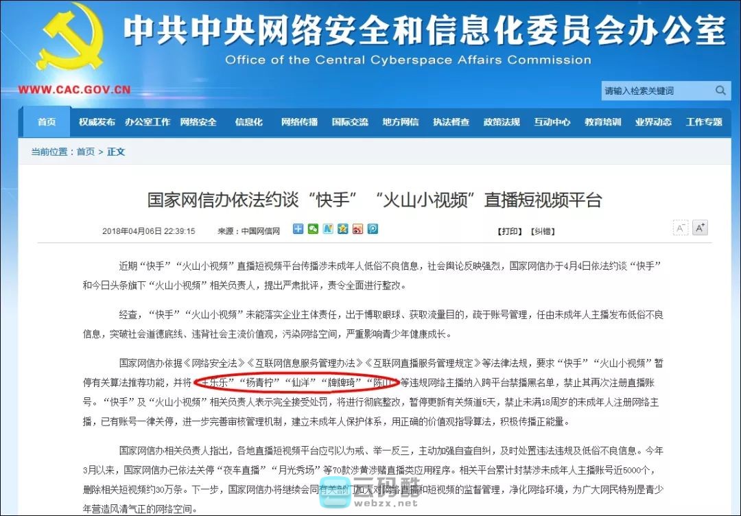 4月6日,国家网信办发布消息,要求“快手”“火山小视频”暂停有关算法推荐功能,并将“王乐乐”“杨青柠”“仙洋”“牌牌琦”“陈山”等违规网络主播纳入跨平台禁播黑名单,禁止其再次注册直播账号。 4月8日,在CC ...